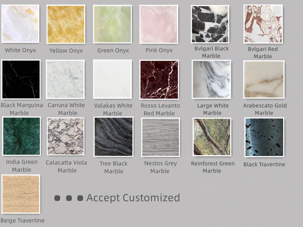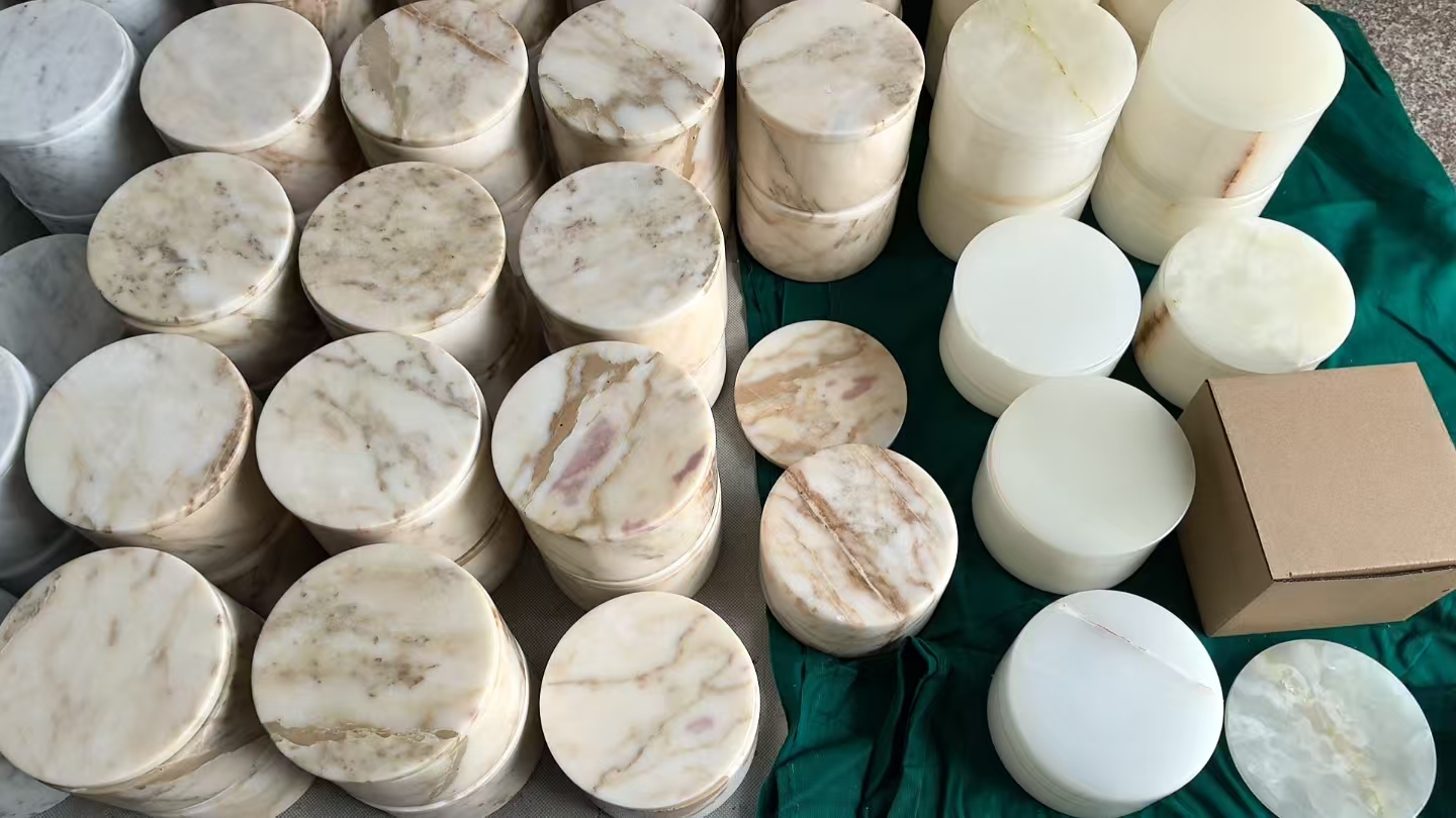 *المادة هي العقيق الطبيعي والرخام. هذا حجر طبيعي، جميل وفريد من نوعه. هذه جرة شمع جديدة لدينا، نستخدم رخام كالاكاتا في تصنيعها لأول مرة. إنها فاخرة جدًا. المواد المستخدمة لدينا هي العقيق والترافرتين والتيرازو. إذا كنت ترغب في مواد أخرى، يمكننا توفيرها لك.