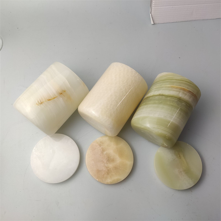 جرة شمعة من حجر العقيق الأبيض مع غطاء من العقيق