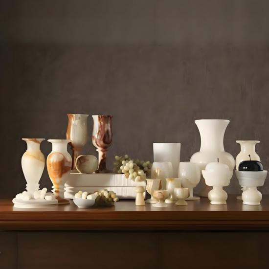 حامل الشموع الخاص بنا مصنوع من رخام كالاكاتا الطبيعي 100%، ويأتي بأحجام وأشكال قابلة للتخصيص. فهو لا يقتصر على وظيفة حامل الشموع فحسب، بل يتميز أيضاً بجمال الطبيعة.