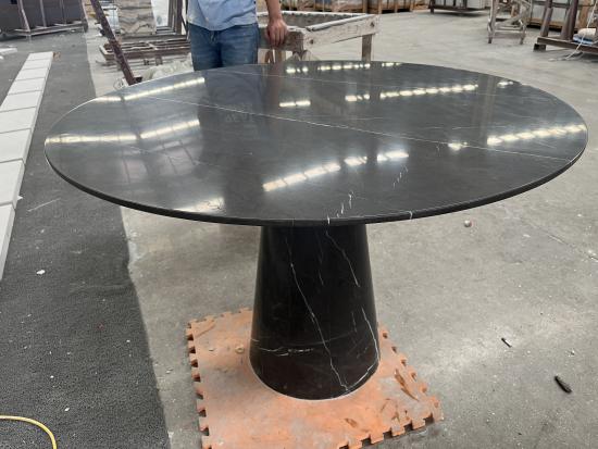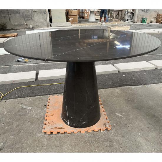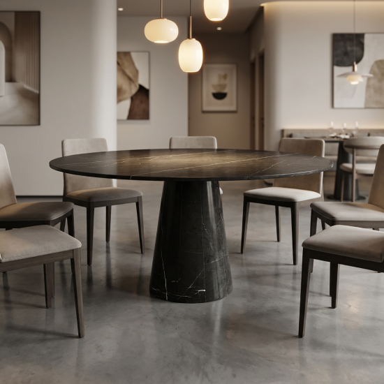 مصنوعة من رخام نيرو ماركينا الطبيعي، تضفي طاولة الطعام المستديرة هذه لمسة من الفخامة الخالدة والأناقة العصرية البسيطة على أي مساحة طعام. يتميز سطح الطاولة المستدير المصقول بلمسة نهائية لامعة، تُبرز اللون الأسود الداكن المميز للرخام مع عروق بيضاء طبيعية لافتة للنظر - تتميز كل قطعة بنقوش فريدة لا مثيل لها، مما يجعلها قطعة فريدة حقًا. وبفضل قاعدة الطاولة المتناسقة المصنوعة من الرخام الصلب المدبب، توفر الطاولة ثباتًا ومتانة استثنائيين، بالإضافة إلى مظهر جمالي راقٍ ومتكامل.